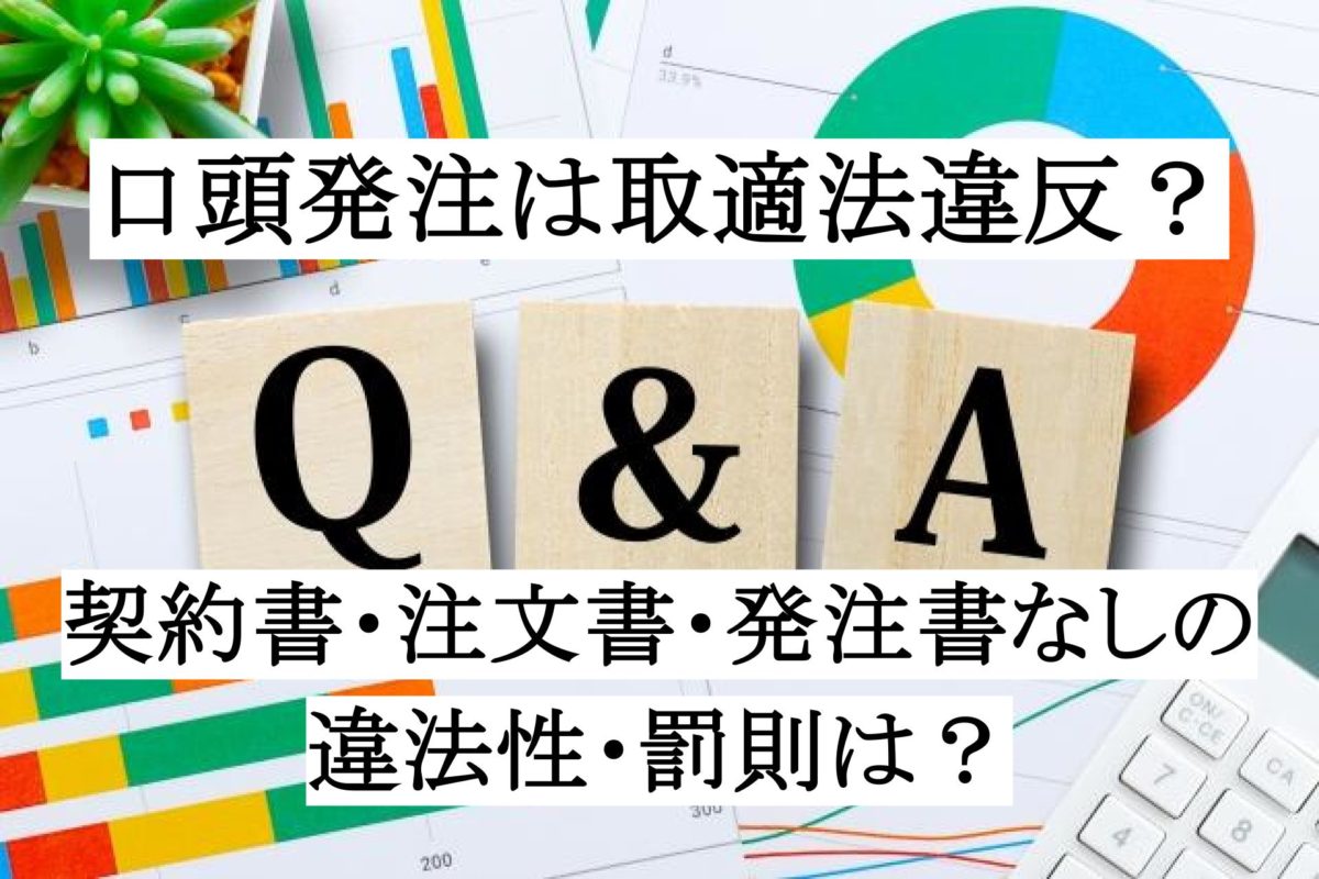 取適法(旧下請法)で口頭発注は違法?契約書なし・発注書なしの罰則リスクを解説公開日:2026年1月23日業務委託契約と取適法よくある質問 取適法(旧下請法)が適用される取引きで、契約書・注文書・発注書なしの発注(口頭発注)は違法になるのでしょうか?また、どのような罰則となるのでしょうか? 取適法が適用される場合、委託事業者(旧親事業者)が契約書・注文書・発 […] 続きを読む